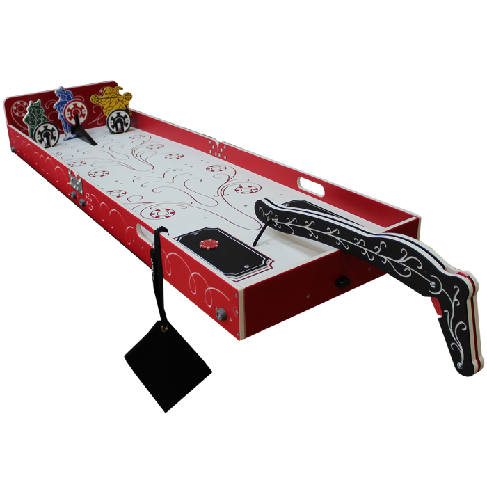 In Fool’s Roll, the line between a champion and a jester is as thin as the edge of a poker chip. This tabletop game of skill challenges players to master the physics of motion and the steady nerves of a high-stakes gambler. Launch a poker chip with the scoring arm using your angle, witts, and gravity to roll the chip into the Jester's scoring slot.